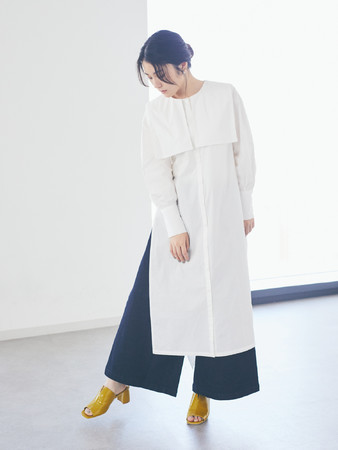 ボーイッシュな方でもレディな方でも、合わせるパンツやスカートによって、雰囲気がガラッと変わるので、着回ししやすいかなと思います。スリットをかなり深く入れたのでパンツに合わせても、足を出しても、風などで横から見える姿がオシャレなアイテムです!!