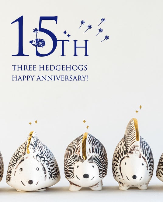 はりねずみ3兄弟が生まれて、2025年で15年がたちました。その記念に、かつて一度だけ作られた金をまとったはりねずみを復刻しました。おめでとうございます。ありがとうございます。