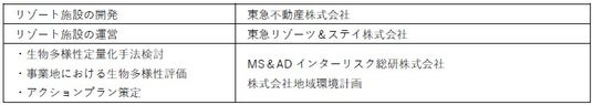 本取り組みは、リゾート施設の運営管理を行う東急リゾーツ&ステイのほか、自然資本に関するコンサルティングを手掛けるMS&ADインターリスク総研株式会社、生物多様性の取り組みをサポートし、自然環境に関する調査等を実施する地域環境計画など、生物多様性に精通したパートナー企業と協業し検討を進めてまいりました。