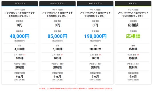 4.8万円~で4000件以上の企業にアプローチが可能(1件あたり12円~)、自社での作業やフォームDM代行などに比べ、大きく時間を短縮しながらより多くの企業に低コストで営業が可能なため、より多くの新規案件獲得が見込めるサービスです。