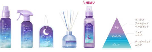 Well Being(ウェルビーイング)ニーズの高まりを背景に「ラボン」から発売された『ラボントゥザムーン』シリーズ。クリアなアンバーとやさしいシトラスが調和した「トワイライトマジックの香り」と、やわらかなサンダルウッドと神秘的なアルモワーズが織りなす落ちついた「ノクターナルブルーの香り」。深呼吸したくなるようなリラックス体験を提供する、2種類の香りを楽しめます。