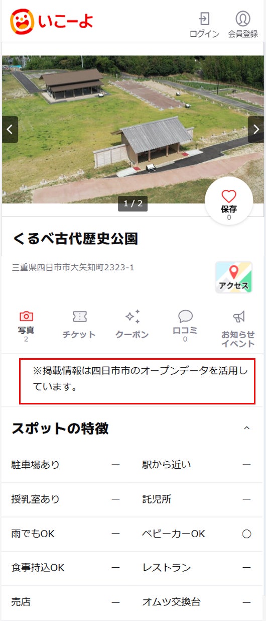 2025年4月より、三重県四日市市の「子どもとおでかけ向け」施設のオープンデータを利用しています。データは「いこーよ」サイトおよびスマホ向けアプリの「おでかけ」情報欄に掲載され、どなたでも無料でサービスをご利用いただけます。なお、情報欄にはオープンデータを利用している旨が記載されます。