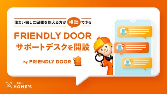 事業を通して社会課題解決に取り組む、株式会社LIFULL(ライフル)(本社:東京都千代田区、代表取締役社長:伊東祐司、東証プライム:2120)が運営する不動産・住宅情報サービス「LIFULL HOME'S(ライフルホームズ)」は、住まい探しに困難を抱える住宅弱者の方がLINE等で相談ができる「FRIENDLY DOOR サポートデスク」を、2024年6月28日(金)に開設しました。