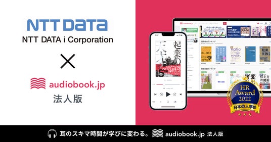 株式会社オトバンク(本社:東京都文京区、代表取締役社長:久保田裕也、以下「オトバンク」)が提供する法人向けのオーディオブック聴き放題プラン「audiobook.jp 法人版」が、NTTデータグループ内で初めて、株式会社NTTデータ・アイ(本社:東京都新宿区、代表取締役社長:臼井 紳一、以下「NTTデータ・アイ」)に6月から導入されました。通勤中などのスキマ時間に効率よく学べるオーディオブックで社員の自己学習を促進します。
