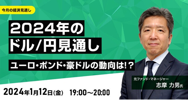 事前お申込み不要!参加費無料!【スマホ視聴OK】『2024年のドル/円の見通し ユーロ、ポンド、豪ドルの動向は!?』を1/12(金)に開催いたします