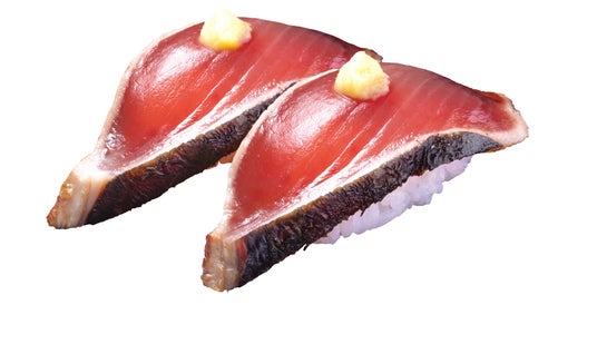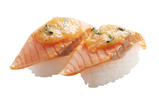 また、シャキシャキ食感の青ネギとタマネギ、ほんのり甘い味噌をあわせた特製だれをサーモンに塗って香ばしく炙った「サーモン(ネギ味噌焼き)」、金目鯛の上品な甘みを、もみじおろしのピリッとした辛さが引き立てる「青森県水揚げ 金目鯛(もみじおろしのせ)」が登場。期間限定の旨ねたを、どうぞお見逃しなく!
