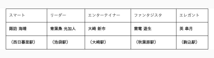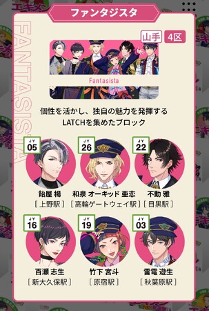 8月18日(金)にスタートした山手線最強メンバーを決める「エキメン総選挙」にはLATCH総勢30名が属性ごとに5つのブロックに分かれて参戦。パッセンジャー(=ファンの呼称)のみなさまからの投票を受け付けています。