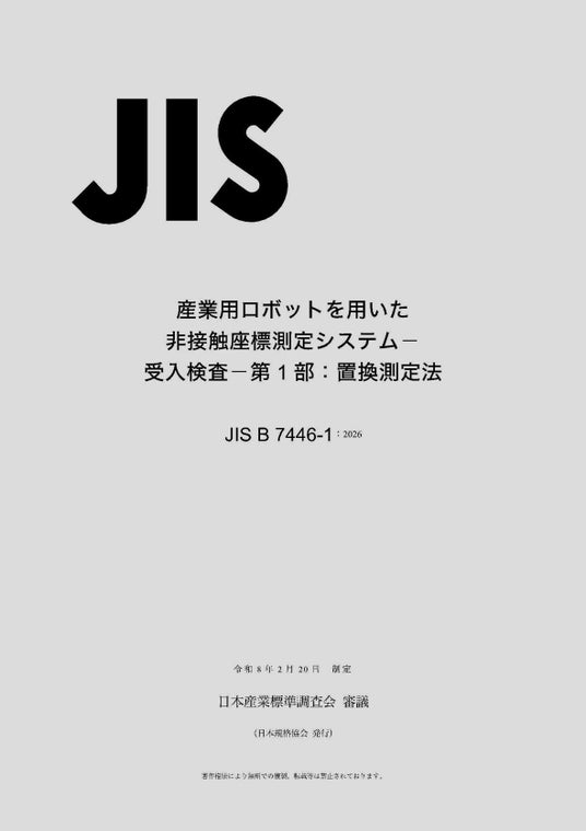 一般財団法人日本規格協会(本部:東京都港区、理事長:朝日弘)は、2026年2月20日に産業用ロボットを用いた非接触座標測定システムに関する日本産業規格(以下、JISという。)を発行いたしました。この規格は、「新市場創造型標準化制度」を活用して作られました。