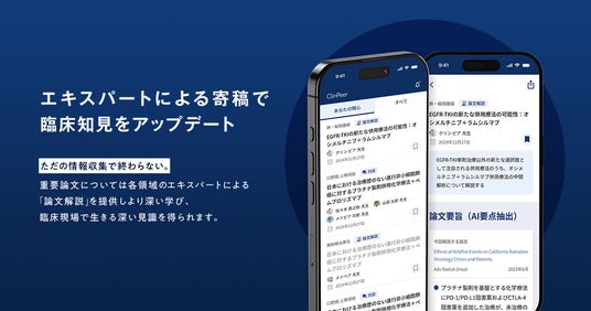 「ClinPeer」は、国内外の論文のキュレーション、エキスパートによる寄稿、症例検討を通して、専門医の臨床研鑽を支援するアプリです。現在はオンコロジー領域にフォーカスし、がん診療に携わる医師にとっての「専門領域における臨床研鑽の場」となることを目指しています。