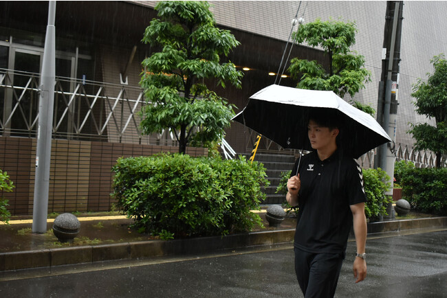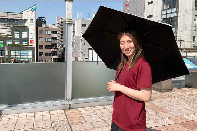 大宮アルディージャVENTUSの仲田歩夢選手は、「やっぱり日傘をさすと涼しいですね。私は練習時も日焼け止めや長袖の着用など、日焼け対策を行っています。美容ということもちろんですが、日焼けによるパフォーマンス低下を防ぐ意味合いがあります。普段から使いやすい折り畳み式の日傘はいいですね」とレコメンド。