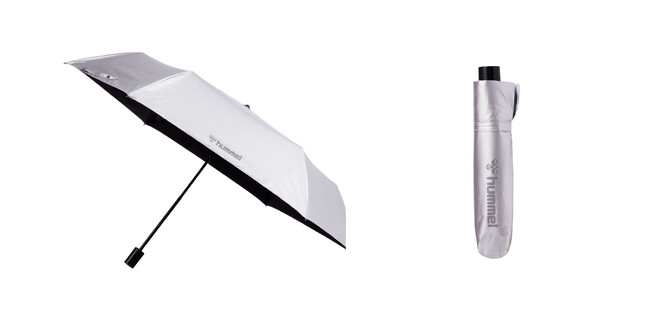 デンマークのスポーツブランドhummel(ヒュンメル)は、折り畳みの日傘を全国のスポーツ店やヒュンメルアウトレット門真などで販売中。今まで、ゴルフ用や屋外スポーツのスタッフ用を目的に遮蔽率に優れた長傘が安定した人気を保ってきましたが、『使いやすい折り畳みタイプを』という声に応えて、今春から展開しています。