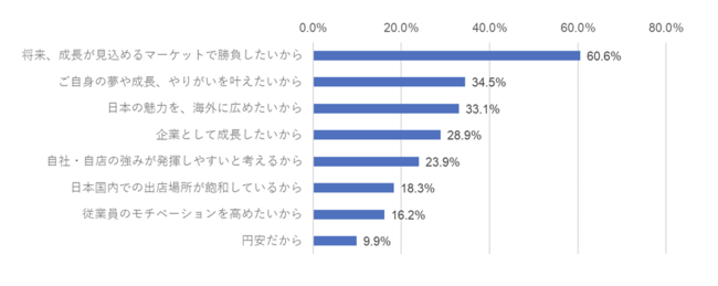 ■海外出店を検討する理由のNo.1は、「成長が見込めるマーケットで勝負したい」。