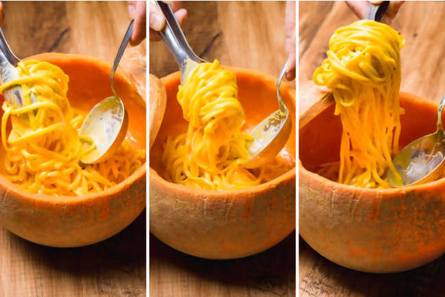 贅沢すぎる!肉盛り×ミモレットチーズの器で仕上げる濃厚カルボナーラ