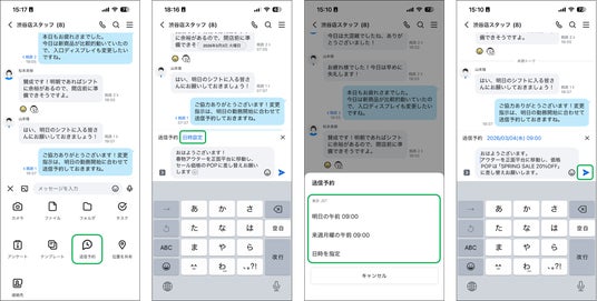 今回のアップデートでは、このような背景とユーザーから寄せられた要望を踏まえ、従業員・スタッフの勤務状況や、“つながらない権利”に配慮しながらも、円滑な業務連絡を可能にする「送信予約」機能を追加しました。