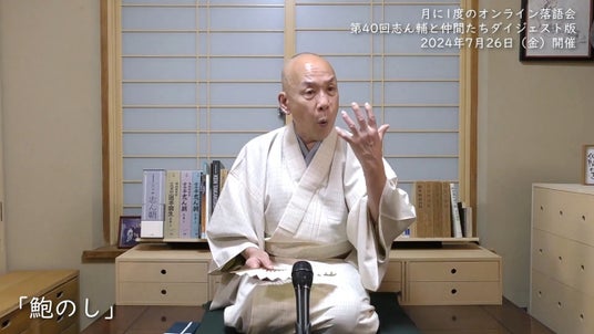 毎日新聞社は2021年4月より月に1度、落語家・古今亭志ん輔師匠の自宅稽古場からオンラインで生配信する落語会「志ん輔と仲間たち」を開催しています。