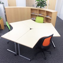 ブーメランデスク3台を向き合わせると、中央部分に空間ができます。