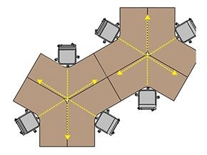 複数デスクを組み合わせた時に120度の角度が付いているため視線が合いづらい設計になっており、お互いが正面で向き合わないことが、デスクワーク時の集中力向上とストレス減少を見込めます。