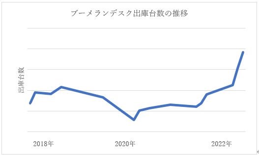 2022年に入り過去最大の販売台数を更新しているブーメランデスク。