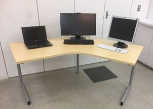 PCと作業用のモニターを置いても広々とした作業スペースを確保できるため、IT系の企業や、大学など学校でPC作業が多い方に大変ご好評頂いております