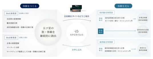 エクスペリサス社は、旅や体験を「つくる」、「売る」という2つの軸を基盤として、富裕層訪日外国人向け旅行事業のほか、官公庁自治体向け地域プロモーション事業、企業向け富裕層マーケティング事業に取組んでいます。