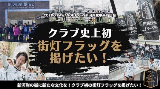 COEDO KAWAGOE F.Cでは、2024年8月30日(金)より新河岸駅中央商店会様ご協力のもと、「新河岸駅前街灯コラボフラッグ掲出」に関するクラウドファンディングを実施いたしますことをご報告いたします。