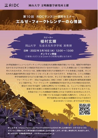 第10回となるRIDCマンスリー研究セミナーを下記の通りオンラインで開催します。