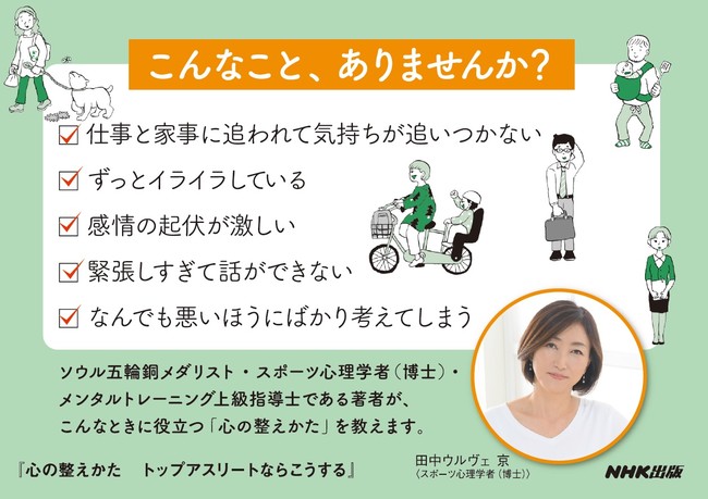田中ウルヴェ 京さんが、五輪メダリスト・代表チームの元コーチ・スポーツ心理学者という3つの立場からアプローチ。今日から簡単にできるワークも多数紹介した書籍『心の整えかた トップアスリートならこうする』がNHK出版より8月25日に発売になります。
