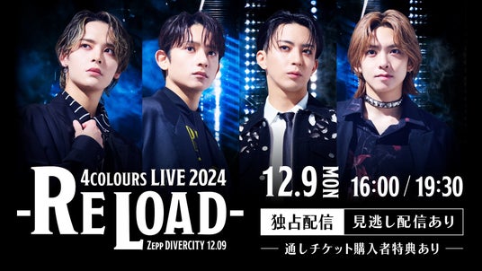 舞台や映像作品など多方面に活躍している人気男性俳優、橋本祥平、石川凌雅、松島勇之介、坪倉康晴の4 人は昨年、一日限定でドリームバンド・4COLOURS を結成。彼らのお披露目となったライブ、「ONESONG LIVE 2023 4COLOURS」では開催情報が発表されるやいなや、その夢のタッグが話題となり、会場チケットは即完売!SNS 上では、来年も開催してほしいと望む声も多く寄せられ、LIVE は大盛況で幕を閉じました。あれから1 年……。ファン待望の再結成LIVE「4COLOURS LIVE 2024 -RE LOAD-」の開催が決定しました!昨年より規模の大きな会場である、Zepp DiverCity での開催となります。そして、オンライン動画配信サービスHulu では本公演の模様を独占でライブ&見逃し配信いたします。