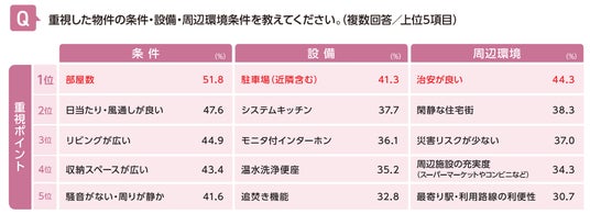 ■重視したポイント 条件1位「部屋数」、設備1位「駐車場(近隣含む)」、周辺環境1位「治安が良い」
