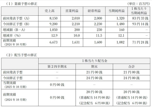 フィットイージー株式会社(本社:岐阜市、証券コード:212A)は、2024年12月13日に公表の2025年10月期の業績予想及び配当予想を修正いたしましたので、下記のとおりお知らせいたします。