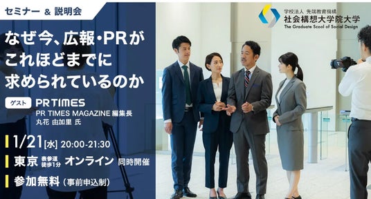 学校法人先端教育機構 社会構想大学院大学(本部:東京都港区、学長:吉國浩二)は、「なぜ今、広報・PRがこれほどまでに求められているのか」を1月21日(水)に開催いたします。