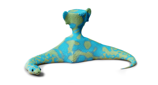 つぶらな瞳でとってもキュートな「ノミコンダさん」。しかし、クリーチャーだけあって、いつもお腹をすかせて獲物を探しています。自分より大きなものだってなんのその。二宮金次郎的なものをはじめ、高級車、まねきねこ、トロフィー、果ては国会議事堂まで!なんでもかんでもまるのみにしてしまいます。研究者によれば、人間の欲望にまつわるもの、お金や権威、権力にまつわるものが特に大好物なんだとか。ゴムのようにどこまでも伸びるノミコンダさんのカラダ。のみこんだもののシルエットがうっすらとわかるのがチャームポイント。おおよそ一週間かけて溶かしてしまうそうですよ。のみこんだものの種類によって体の色が変わるのも特徴です。