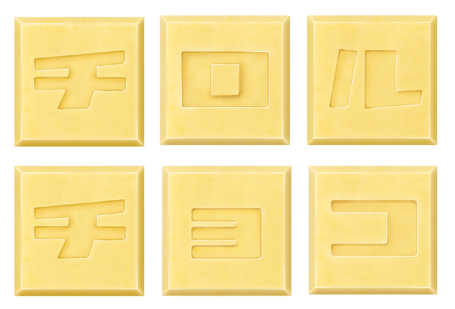天面には「チ」「ロ」「ル」「チ」「ョ」「コ」の文字が書かれています。