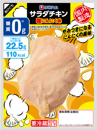 伊藤ハム株式会社は、鶏むね肉を使いタンパク質が手軽においしく摂れる「サラダチキン」のシリーズ品として、強いにんにく風味が特長の「サラダチキン強(きょう)にんにく味」を発売します。