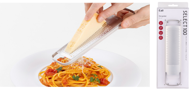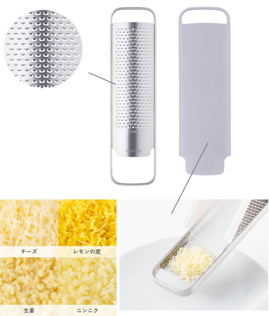 一般的にグレーターはサイズが大きなものや、ターゲット食材をハードチーズに絞ったものが多く、日本では特別な時に使用する道具というイメージがあります。そこで、今回発売するSELECT100 グレーターは、収納に便利なコンパクトなサイズ感や、目立ての角度や形状にこだわりハードチーズや柑橘だけでなく、生姜やにんにくなど日常的に使う食材もおろせる仕様を追求しました。