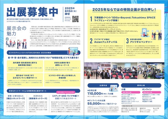 徳島県内外のビジネス関係者が販路拡大や新たなビジネスのきっかけ作り、意欲ある取組みを広く発信できる場として活用いただける「ビジネスチャレンジメッセTOKUSHIMA2025」を10月9日(木)から10月11日(土)までの3日間開催します。ただいま、メッセ会場にご出展いただける企業様・団体様を募集しています。オンライン出展も可能です。ご出展のお申込み期間は8月5日(火)まで。皆様のご参加をお待ちしております!