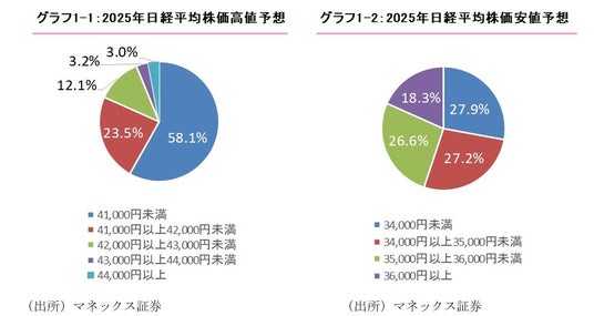 (1-1)2025年の日経平均株価の高値予想は「41,000円未満」が最多、安値予想は「34,000円未満」が最多