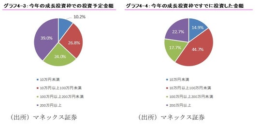 「成長投資枠とつみたて投資枠の両方を利用して投資した(している)」または「成長投資枠のみを利用して投資した(している)」と回答された方に今年の成長投資枠で投資する予定の金額とすでに投資した金額をたずねました。