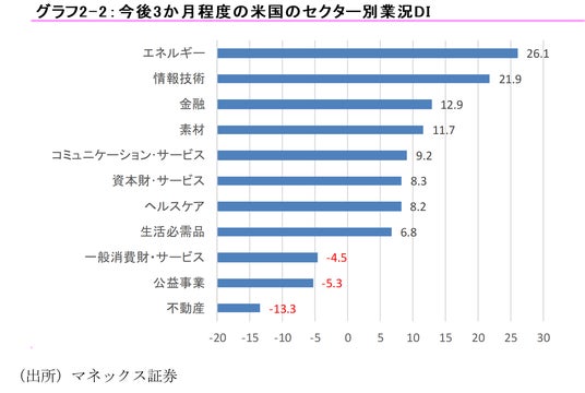 (2-2)米国のセクター別業況DIは「エネルギー」が最高、「不動産」が最低