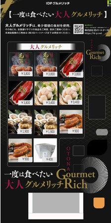 IDパートナーズは、ミシュランレストラン出身のシェフのもと企画開発製造した冷凍食品など、全国より選りすぐりの食品を厳選して希少価値の高い食材を使用した商品を、自動販売機で提供しております。