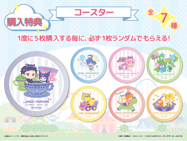 乗り物に乗ったり、食べ物に夢中になったり、それぞれ遊園地でわいわいにぎやかに楽しんでいるイメージのもと、触り心地抜群のラウンドクッションや大容量のドリンクカップ、キャラクター達がゆらゆらゆれるアクリルスタンド、チケットなどを収納できるチケットホルダーなどのグッズをラインナップ!
