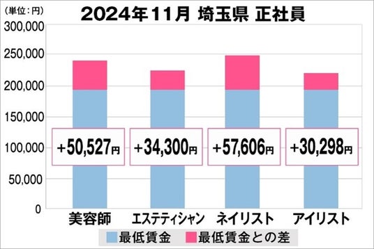 埼玉県の美容業界における採用時給料に関する調査結果(正社員)2024年11月美プロ調べ
