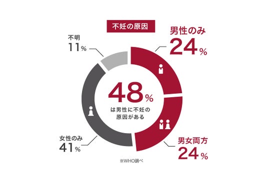 日本の不妊治療件数は年々増加しており、世界一の不妊治療大国とも言われています。また、不妊の原因の約半分は男性側にあると言われており、その約8割が精液の質が悪い、「造精機能障害」です。辻村医師によると、男性の約7割は精液検査を受けたことがなく、Dクリニックの男性妊活外来で精液検査を受けた方の4人に1人は精液の質が悪いそうです。男性は自分の精子に問題があるとは思っていないことから、医療機関を受診する機会がなく、まだ自分事化できていない人が多いのが現実です。