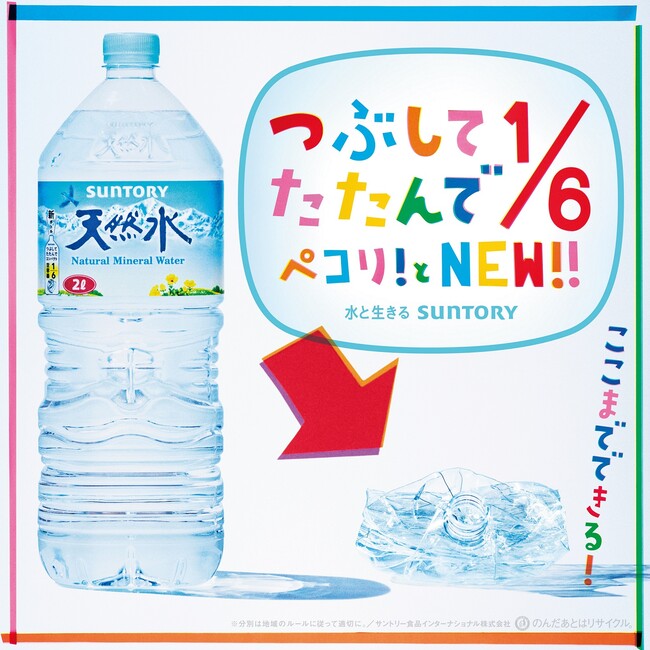今回、日常的に飲まれる機会が多いミネラルウォーターにおいて、とりわけ多くのお客様にご支持いただいている「サントリー天然水」ブランドからの新提案として、お客様の利便性を高めるとともに、世の中にとっても良いことを実現していきたいと考え、「サントリー天然水」2Lペットボトルにて、“小さく、たたみやすい”新容器を開発し、発売することとなりました。