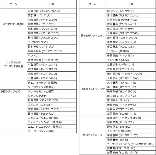【2022年10月3日付までの登録完了選手(女子)】