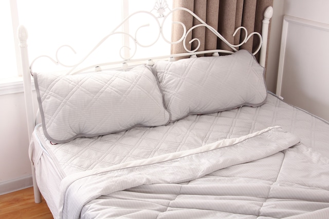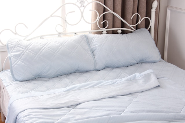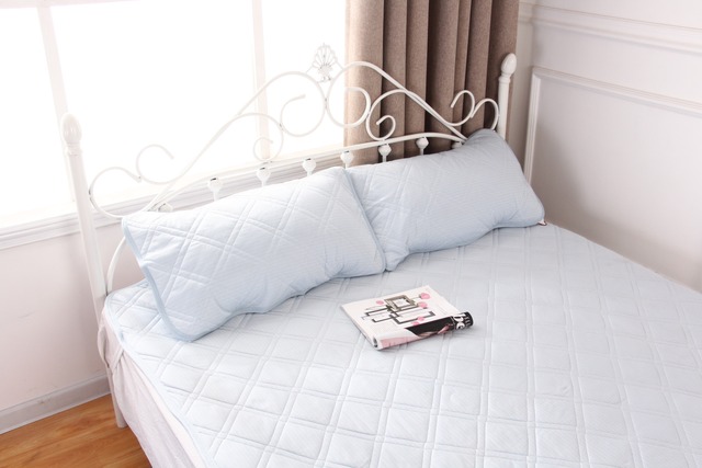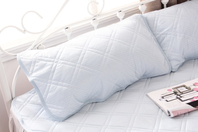 寝苦しい夏の夜、枕の上に敷くだけで涼しく眠れる冷感敷きパッド。ポリエステルで耐久性があり、洗濯しやすく乾きやすい。肌側はメッシュ生地で肌ばなれがよくひんやり、裏面は綿パイル生地なので2WAYで使用できる敷きパッド。四隅のゴム仕様で簡単に装着できます。