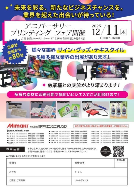 2025年12月11日(木)(株)ミマキエンジニアリング 創立50周年記念「アニバーサリープリンティングフェア」にて、シンクイノベーション(株)が人気グッズビジネスや実績をご紹介