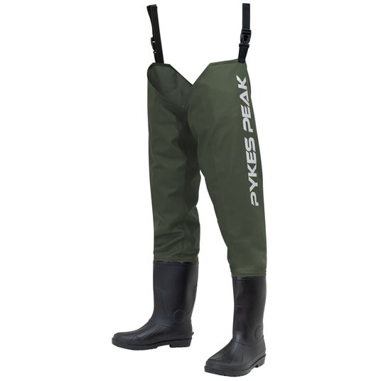 PYKES PEAKのヒップウェーダーは、高い防水性と動きやすさを両立した設計で、渓流釣りや水辺の作業に最適。フィット感のあるショルダーベルトで快適な着用感を実現。