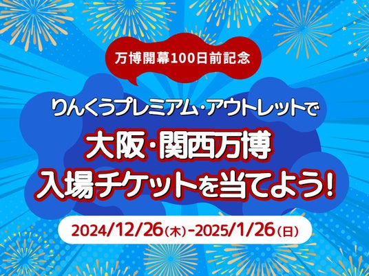 関西最大級を誇るアウトレットモールであるりんくうプレミアム・アウトレット(所在地:大阪府泉佐野市 運営:三菱地所・サイモン株式会社)は、新年のお買い物と合わせて運試しに挑戦できる「万博開幕100 日前記念!りんくうプレミアム・アウトレットで大阪・関西万博チケットを当てよう!」キャンペーンを、2024年12月26日(木)~2025年1月26日(日)に開催します。