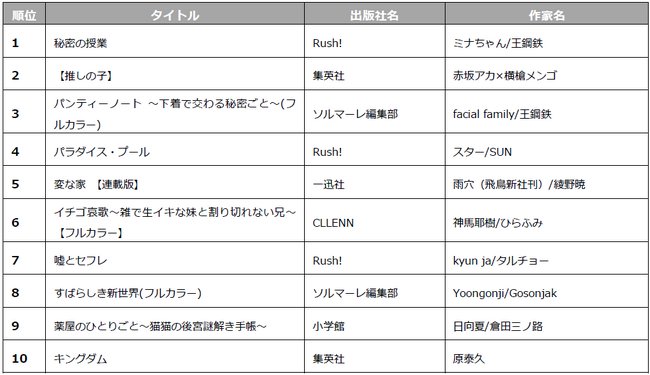 1.「コミックシーモア 年間ランキング2023」ジャンル別TOP10